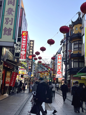 中華街を歩くのは本当に久しぶり、上に釣ってある提灯は龍を模している様子。