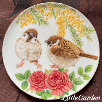 西洋上絵付けとも、チャイナペイントとも言われる技法で、白磁に小鳥と花を手描きしています。
