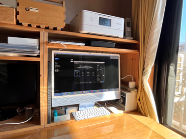 が、写真左端の暗がりには20年モノのデスクトップ、G-4のディスプレイがまだ鎮座。