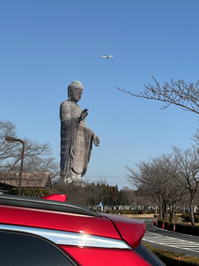 成田への飛行機が大仏さんのすぐ近くを飛んでいます。