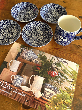 ブルーキャリコの銘々皿と、私のマグカップを求めました。