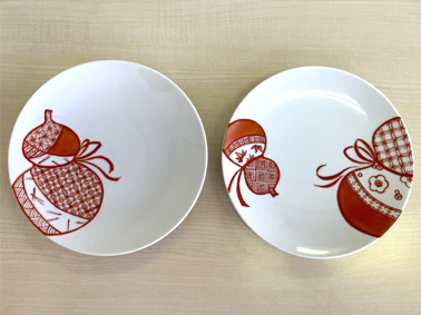 九谷絵の具ではなく洋絵の具を使ってですが、赤絵(もどき)です。