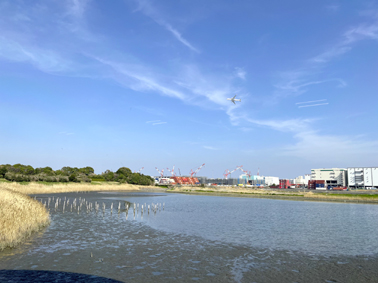 少し先にある「つばさ公園」からは羽田空港が目と鼻の先で。