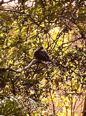 歩いていると足元の薮から飛び出して来たのはキジバト。