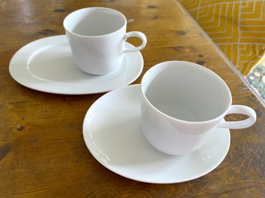 リム付きのオーバル皿と少し小さ目のティーカップ、今年の出展時から仲間入りしている新アイテムです。