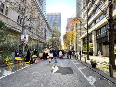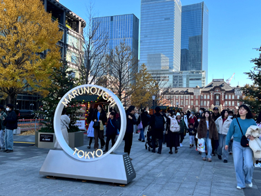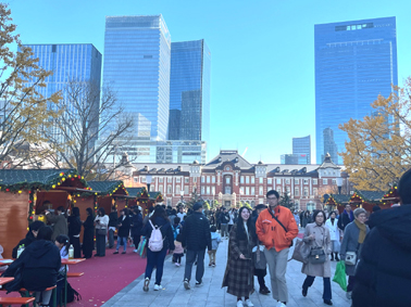 1週間前に車で通りがかって紅葉が気になっていた東京駅正面の通りには、クリスマス・マーケットが出現していました。