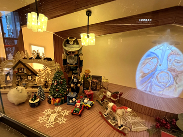 ビルの1階ホールのウインドウも、素朴なクリスマスでした。